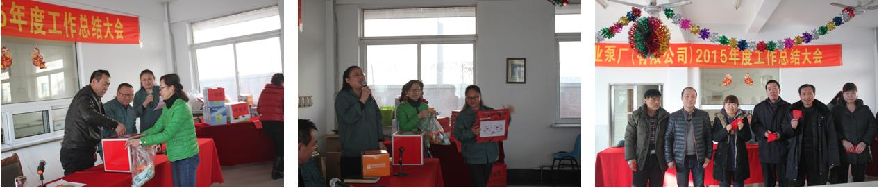 16年2月6日下午,公司在餐廳舉行了年度工作總結大會??偨Y大會上董事長、總經理分別進行了總結發言,并對下一步工作提出要求。大會結束后進行了大家期盼已久的抽獎活動,今年的獎項共設置為:幸運獎、特等獎、一等獎、二等獎、三等獎和紀念獎。抽獎活動上員工們特別開心和放松,活動在一片歡樂、祥和的氣氛中拉下帷幕。