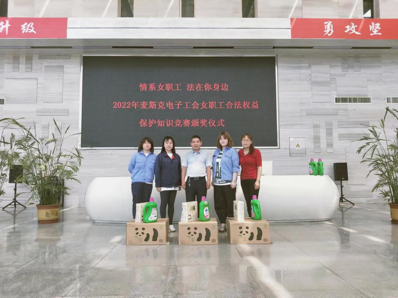 為貫徹落實《中國婦女發(fā)展綱要(2021-2030年)》,根據(jù)《2022年洛陽市總工會女職工工作要點》要求,結(jié)合公司實際,為著力提高公司女職工依法保護能力,全方位維護女職工合法權(quán)益和特殊利益,發(fā)揮女職工在公司生產(chǎn)經(jīng)營發(fā)展中的半邊天作用,麥斯克電子工會組織開展女職工合法權(quán)益保護知識競賽活動。